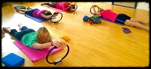 As described above - more complex movements and more challenging, but still very accessible. The Pilates in Clifton 10.00 is a little more challenging than the 11.00. And sometimes we use the Pilates Magic Circle (and it really is!), 7" Overballs (fantastic!), Foam Rollers (also a great tool) and bands. Again, small groups.